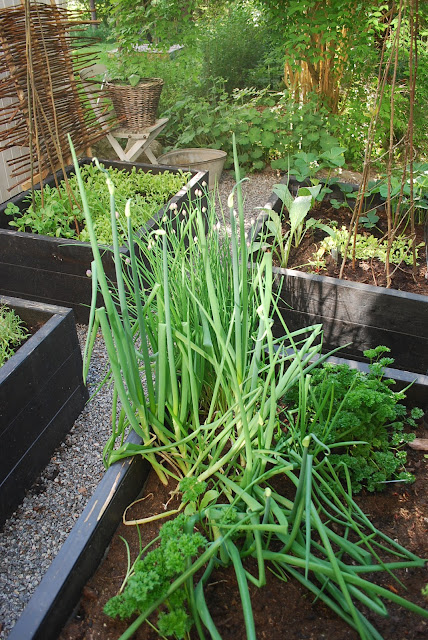 Fina lådor! Tycker alltid det är så hemtrevligt när det börjar växa och gro särskilt i köksträdgårdslanden och lådorna. Ser så mysigt ut med dina lådor, inramningen med armeringsjärn och växtligheten.